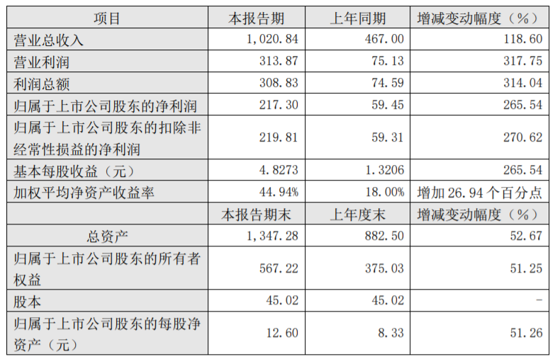 公告显示,2022年三季度末,公司总资产1,347.28亿元,较上年末增长464.78亿元,增长率为52.67%;归属于上市公司股东的所有者权益567.22亿元,较上年末增长192.19亿元,增长率为51.25%。