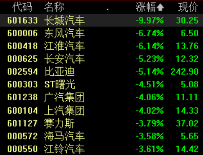 “降价潮”来临!汽车整车板块午后跌势不止 长城汽车跌停