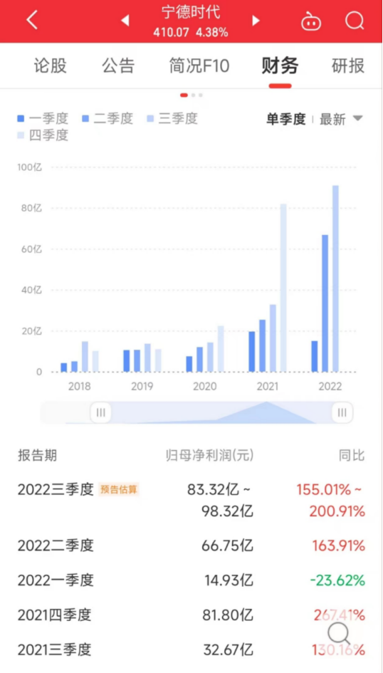 日前,“宁王”公布了一个令市场兴奋的业绩,同时拯救了其已经大幅下挫的股价。