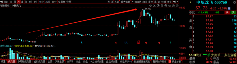 2014年5月,成飞集成复牌并披露重组预案,这一百亿级重组拟将沈飞、成飞打包注入成飞集成,使之成为中航工业集团战斗机板块核心上市平台。此后,成飞集成股价一路高飞,两个月累计大涨超344%。