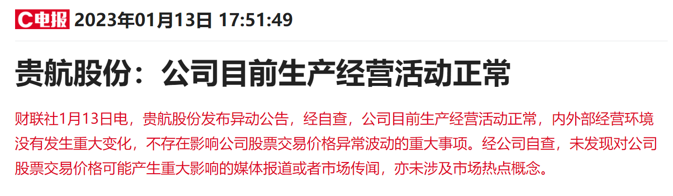 值得一提的是,贵航股份盘后发布异动公告,经自查,公司目前生产经营活动正常,内外部经营环境没有发生重大变化,不存在影响公司股票交易价格异常波动的重大事项。经公司自查,未发现对公司股票交易价格可能产生重大影响的媒体报道或者市场传闻,亦未涉及市场热点概念。