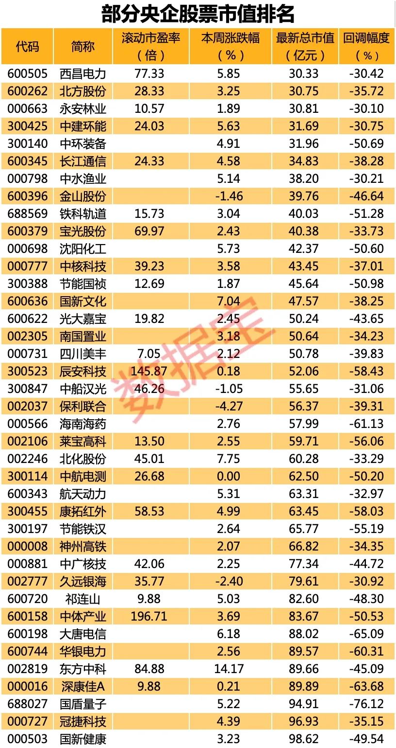 剔除次新股后,合计有39股进入榜单,其中中航电测位列其中。从市值角度来看,西昌电力、北方股份、永安林业、中建环能等个股最新市值均在50亿元以下。这其中还有部分军工概念,包括中船汉光、航天动力等。
