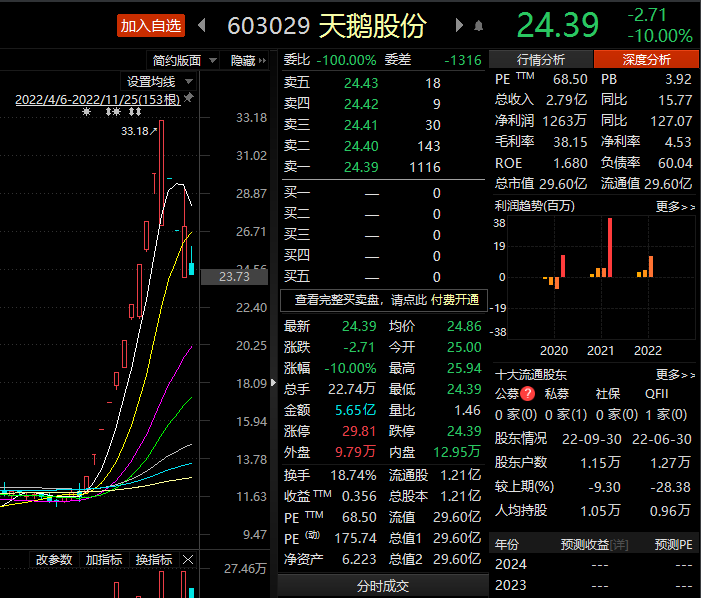 但随后在11月22日-25日的4个交易日,天鹅股份出现3个跌停,在11月21日跟随“拉萨天团”高点入场的投资者预计浮亏严重。
