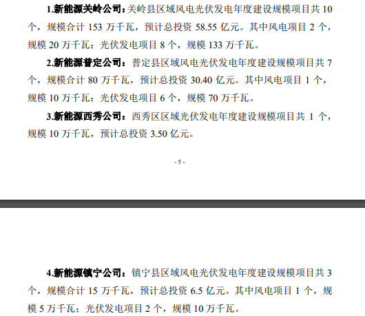 公司拟在上述四个区域内分别成立项目公司,拟开展项目涉及公司有新能源关岭公司、新能源普定公司、新能源西秀公司、新能源镇宁公司。
