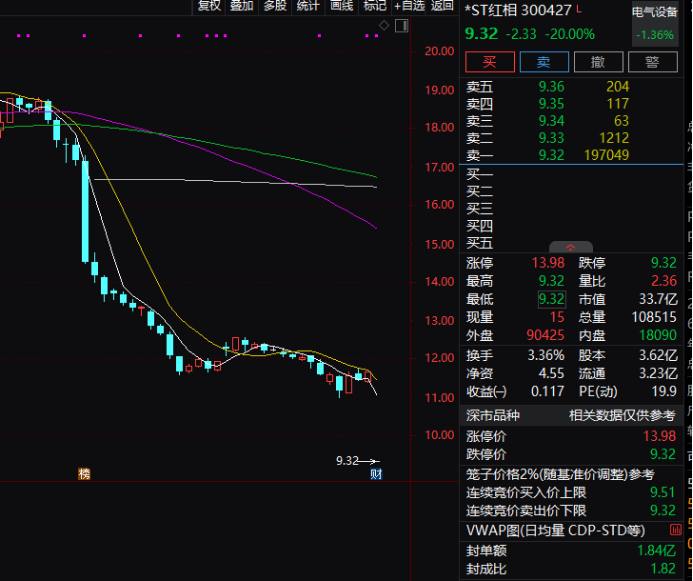两家A股公司被实施*ST后股价“20厘米”跌停