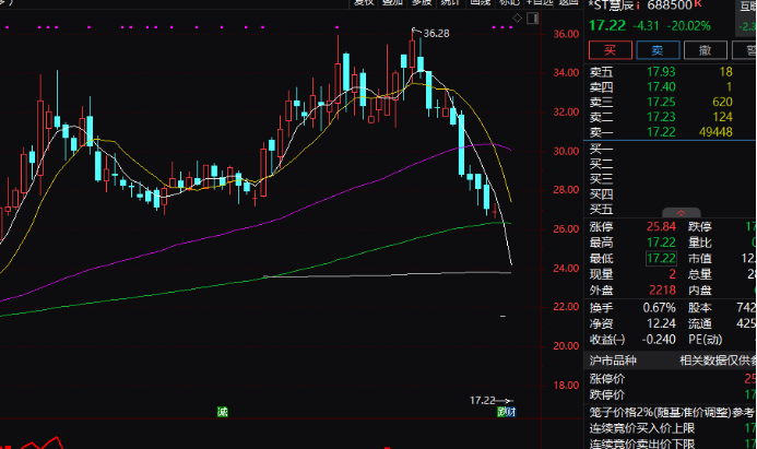 另一家公司*ST慧辰今天上午也触及“20厘米”跌停。