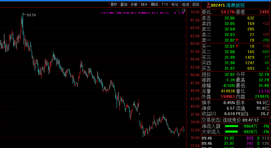 8月15日早盘,海康威视大跌逾4%。截至发稿报32.02元,跌4.16%。
