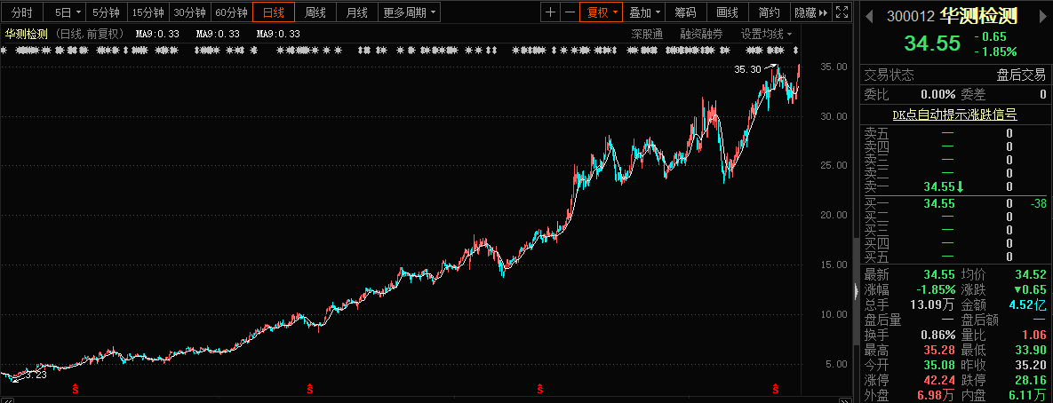 当时,华测检测的股价迎来了一波小幅度的回调,在外资持股比例重新达到28%以下之后,股价自3月起又迎来一波主升浪。而今日,华测检测股价也小幅向下调整1.85%。