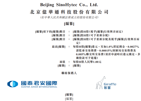 北京亿华通科技股份有限公司周四(1月27日)晚上递表港交所,国泰君安国际和智富为其主承销商。