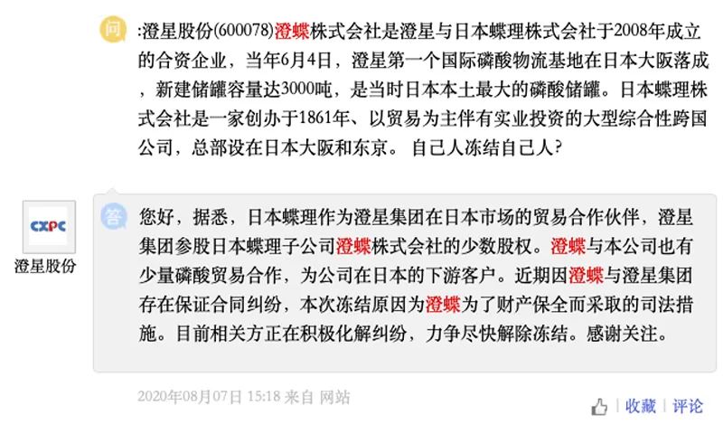*ST澄星曾回复投资者称,澄碟株式会社的母公司碟理株式会社是澄星集团在日本市场的贸易合作伙伴,澄星集团持有澄碟株式会社的少数股权,双方也有少量磷酸贸易合作,为公司在日本的下游客户。