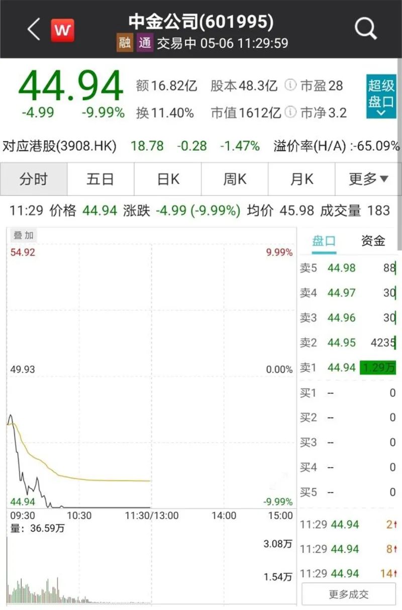 中金公司早盘走势