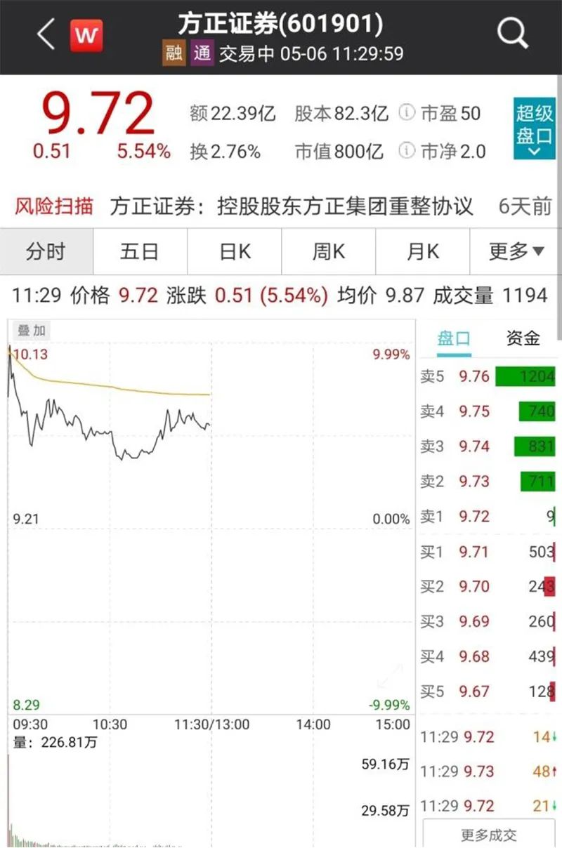 方正证券早盘走势