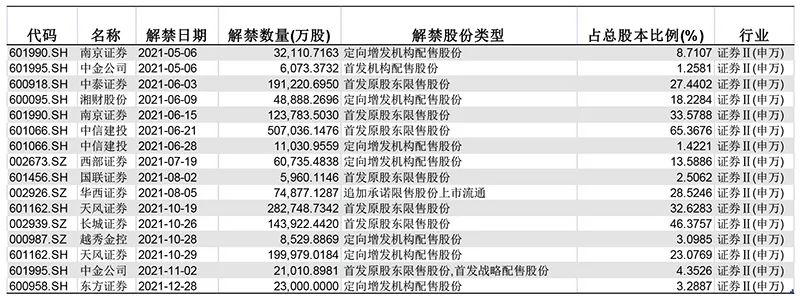 还有这些券商股临近解禁
