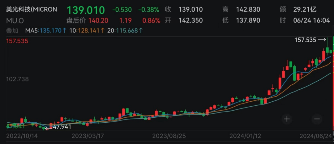 “科技板块肯定有可能下滑,”Miller Tabak的马特·马利说,“即使你同意2024年下半年人工智能领域依旧是最好的选择,但也不会一直持续上涨。”同时,这位分析师认为,美光科技周三即将公布的业绩也将是市场关注的重点。截至周一收盘,美光科技小幅下跌0.38%,报139.01美元,年初至今股价累计涨幅超71%。