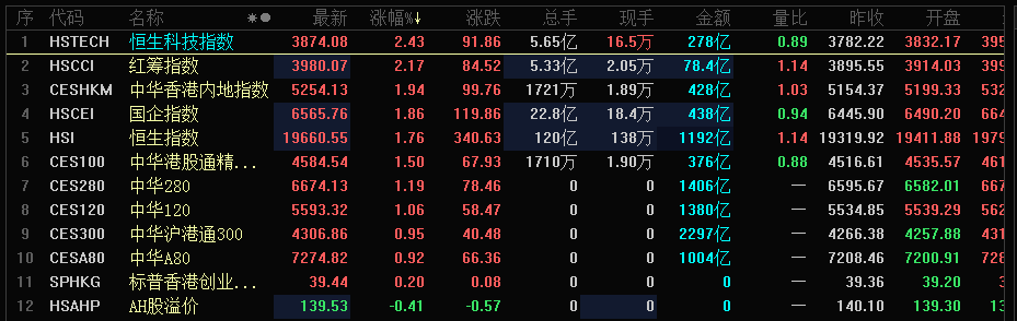 港股市场的表现更为强劲,恒生科技指数一度狂飙超4%。