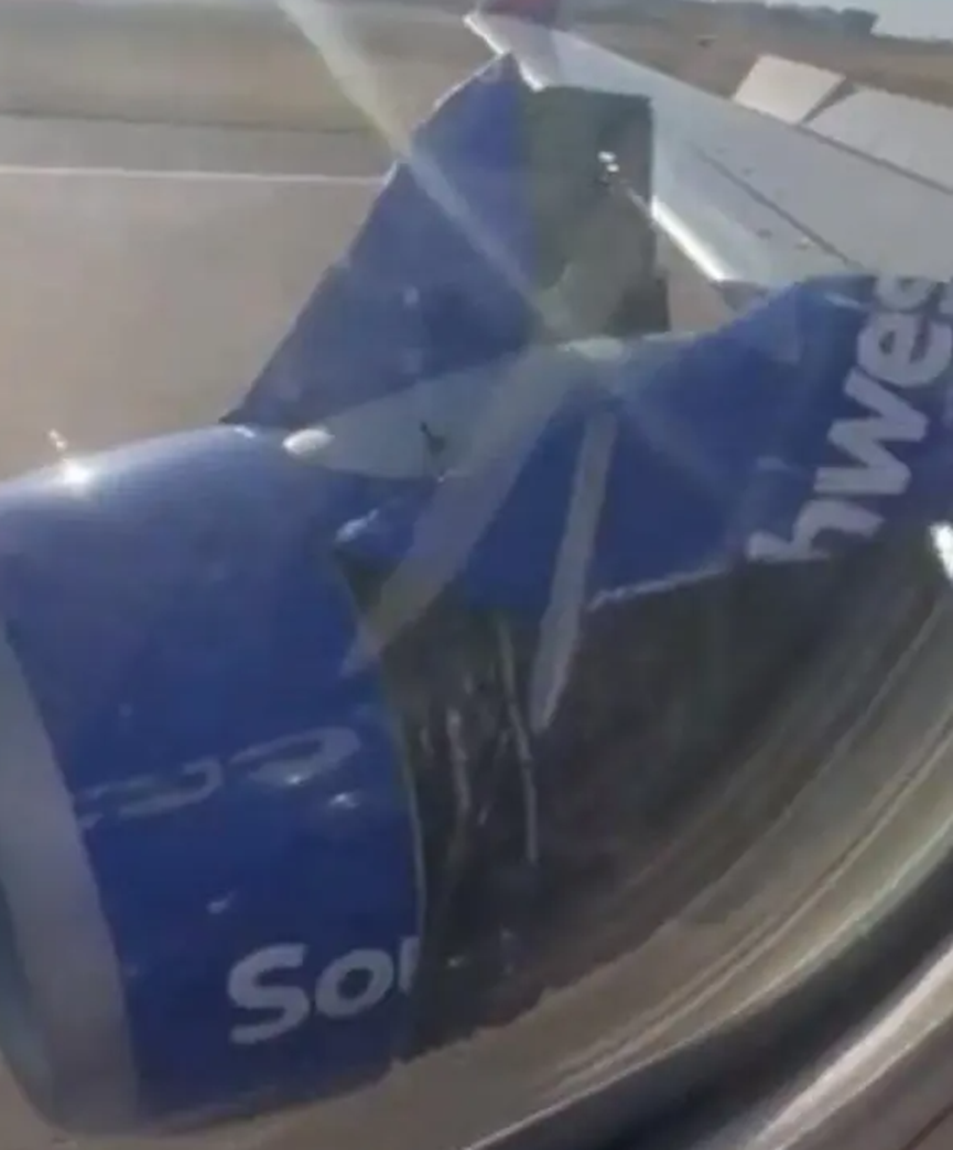 社交媒体上发布的一段视频显示,当飞机在跑道上移动时,其金属发动机盖竟从发动机上剥落,像一片塑料薄膜一样,随气流在风中扭曲。