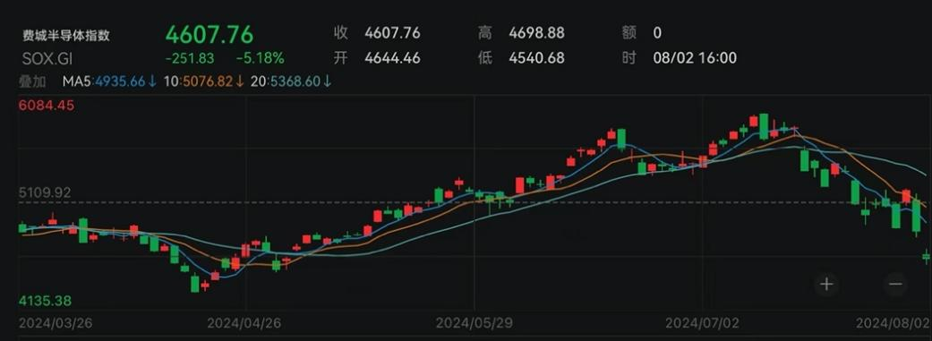 标普500指数下跌1.84%。纳斯达克100指数下跌2.38%。罗素2000指数下跌3.5%。华尔街的“恐慌指数”——VIX创下2023年3月以来的最高水平。费城半导体SOX指数继前一日跌超7%后,周五再度下跌5.18%。英特尔公司因增长预测不佳而暴跌26%。比特币下探至62000美元以下,截至本周五跌幅超8%。