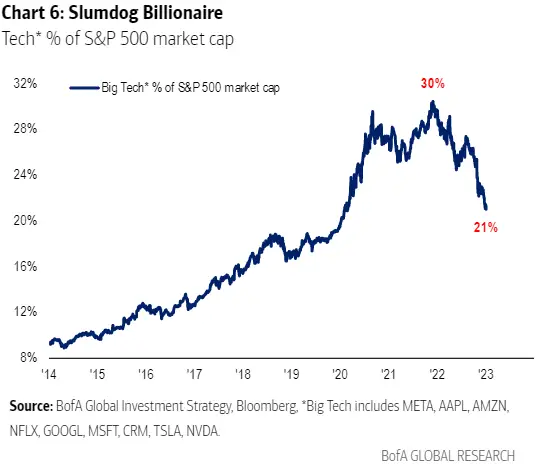 美国银行表示:“随着地缘政治紧张局势缓解、美国国内政治紧张局势加剧、全球政府和投资者分散投资,美元将自2023年开始下跌。”尽管美元贬值将有助于提振美国企业的盈利业绩,但如果人们对这种全球储备货币失去信心,可能会产生负面影响。