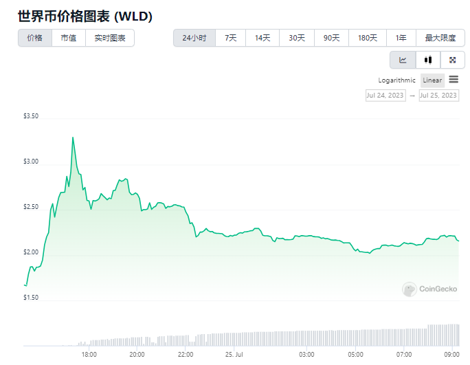 世界币WLD的价格走势图 图源:coingecko