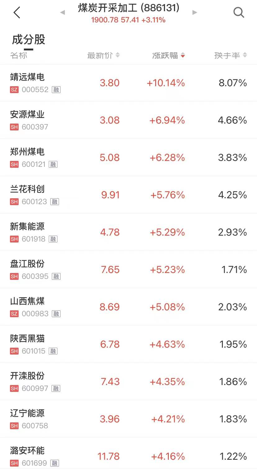 股票方面,中国证券报·中证金牛座数据显示,截至1月4日中午收盘,煤炭开采加工板块涨超3%。其中,靖远煤电涨停,安源煤业、郑州煤电涨超6%,兰花科创、新集能源、盘江股份、山西焦煤涨超5%。