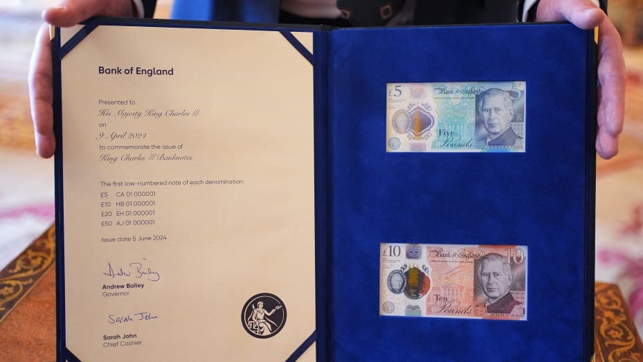 第二位出现在英镑纸币上的国王:印有查尔斯三世的钞票今日流通