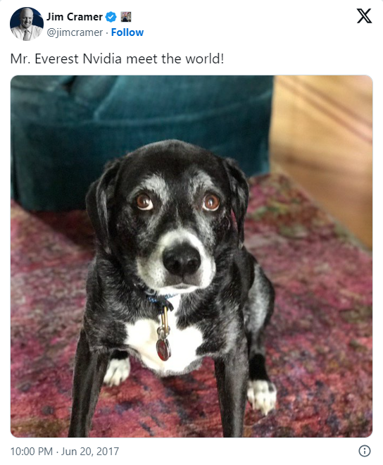 事实上,克莱姆在很长一段时间都非常欣赏英伟达和黄仁勋,并且在2017年给他的养的狗“珠穆拉玛峰”(Everest)改名叫“珠穆拉玛峰·英伟达”。