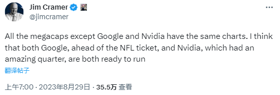 他看好谷歌的原因是新赛季美国橄榄球联赛即将开打(谷歌Youtube拿到周日比赛转播权),唱多英伟达的理由则是公司最近的季报非常完美。