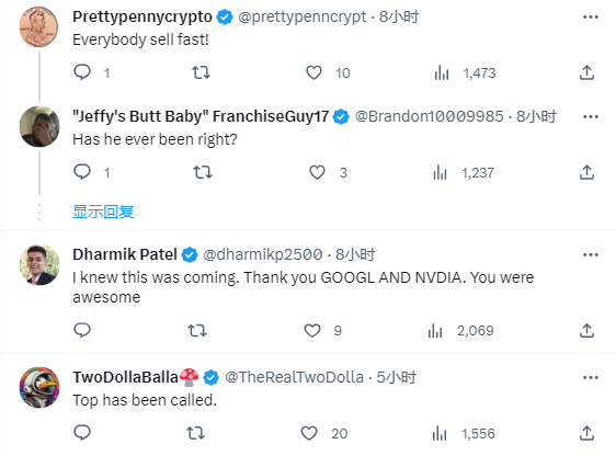 这条消息刚发出后,评论区便成为了网友们狂欢的海洋,大量留言都在戏谑“快去做空英伟达”。
