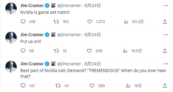 虽然有句俗话叫做“人红是非多”,但克莱姆正是以极具个人魅力的主持风格和大胆做预测的率性著称,也给网友们留下了非常多的欢乐时刻。不过,即便对于天天上镜谈论股票的克莱姆来说,英伟达这只股票也是非常特殊的存在。