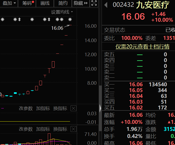 这已经是公司近期第四次披露股价异动公告,尽管公司异动公告发到手软,但仍挡不住投资者买入热情,截止最新,九安医疗已连续9天涨停。