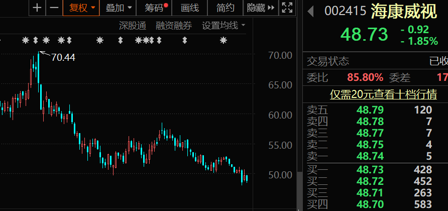海康威视11月23日收盘价为年内最低,公司是国内最大安防视频监控产品供应商,主力资金、杠杆资金近期频繁流出。