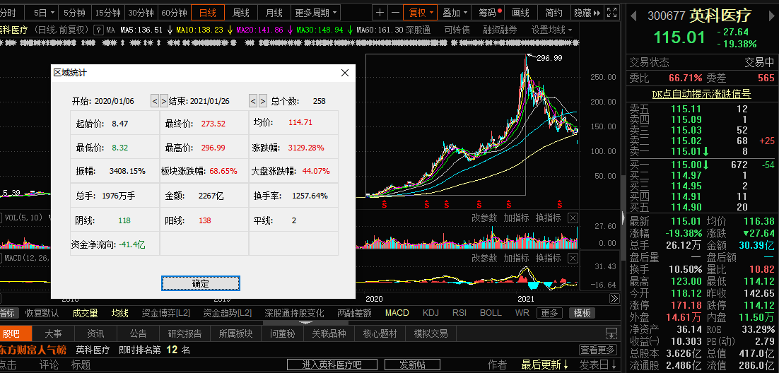 受益于疫情期间手套产品大卖,英科医疗去年业绩大增,股价也于去年一路走高,区间涨幅超过30倍。