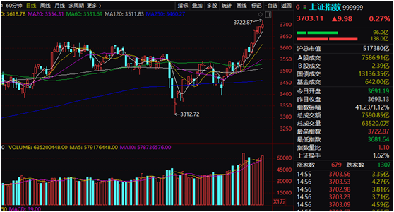 今日,A股市场总体波澜不惊,但对于沪指来说是个喜庆的日子。沪指突破3700点,这是时隔6个多月重返3700点,盘中一度冲高至3722.87点,如果再往上涨少许点数,就会创下最近6年多新高。