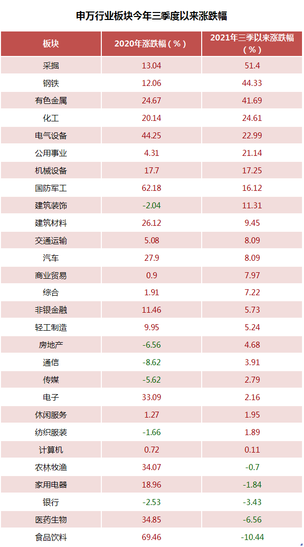 记者根据Wind数据统计发现,今年三季度以来,采掘(主要是煤炭股)、钢铁、有色金属、化工等周期和资源股明显跑赢,其中,采掘板块整体涨幅超过五成。上述行业板块都属于典型的传统赛道。