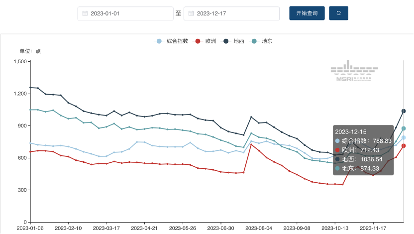 有分析人士对财联社记者表示,目前运价上涨,巴以冲突因素已有所体现。根据宁波航交所数据,目前NCFI指数欧洲航线已连续四周上行(11月17日-12月15日区间),涨幅达62.9%。