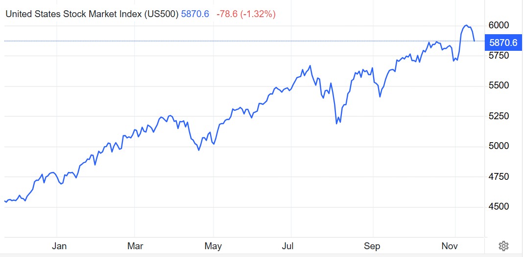 在美国总统大选结果公布后,高盛重申了其对标普500指数12个月内达到6300点的预测。这家华尔街金融巨头对美股的看法并没有随着特朗普当选美国第47任总统而改变,预计到2025年,强劲的盈利增长将支撑市场上涨。截至上周五美股收盘,标普500指数收于5870.62点。