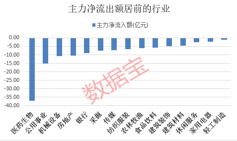 今日有12个行业的主力资金实现净流入。数据宝统计显示,电子行业资金流入居首,净流入54.59亿元。有色金属次之,获得主力39.72亿元的增持。医药生物行业遭到主力砸盘,超37亿元流出。公共事业、机械设备、房地产等行业均遭到了主力的出逃。