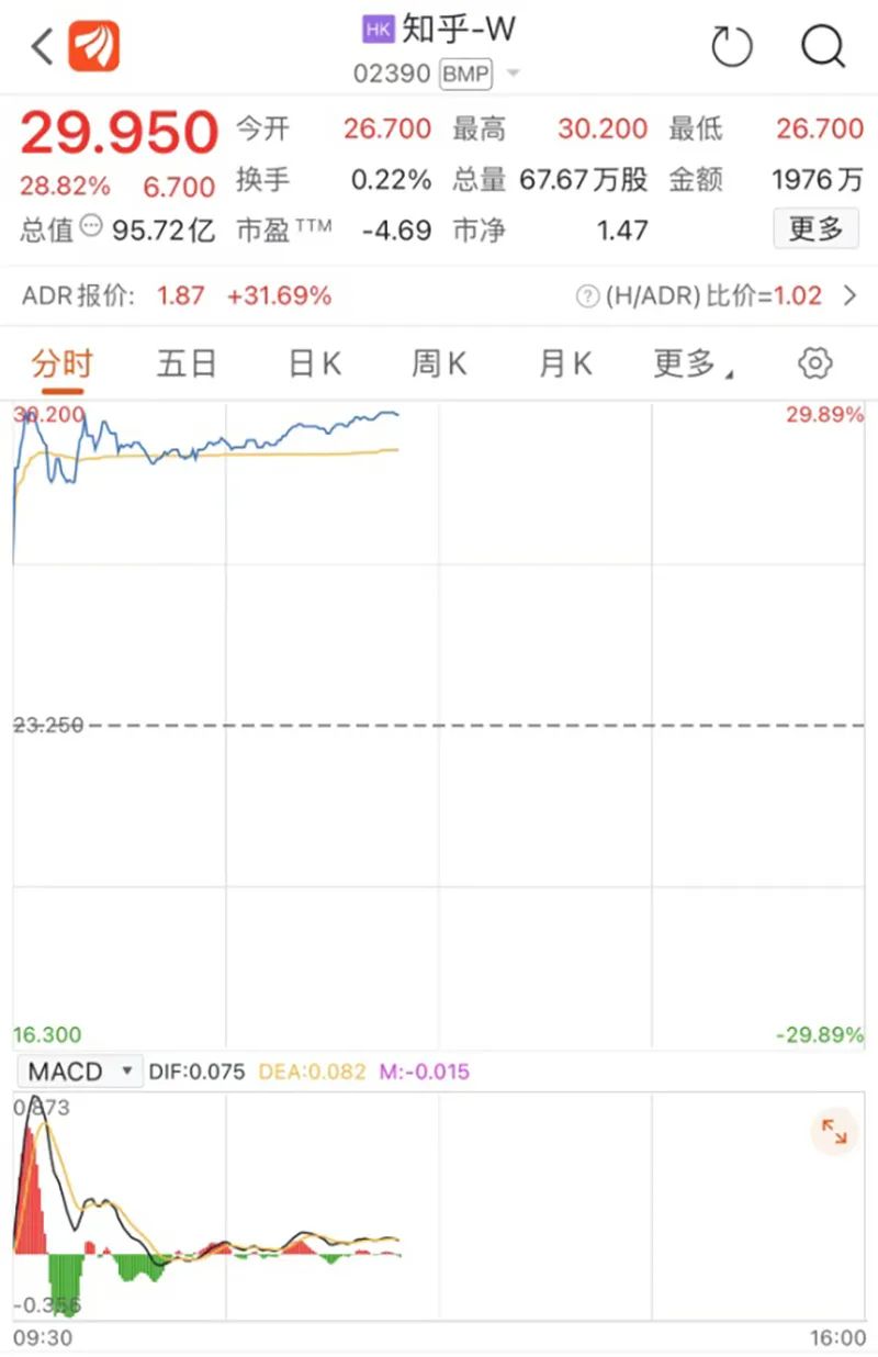 知乎-W上演近“30cm”大涨