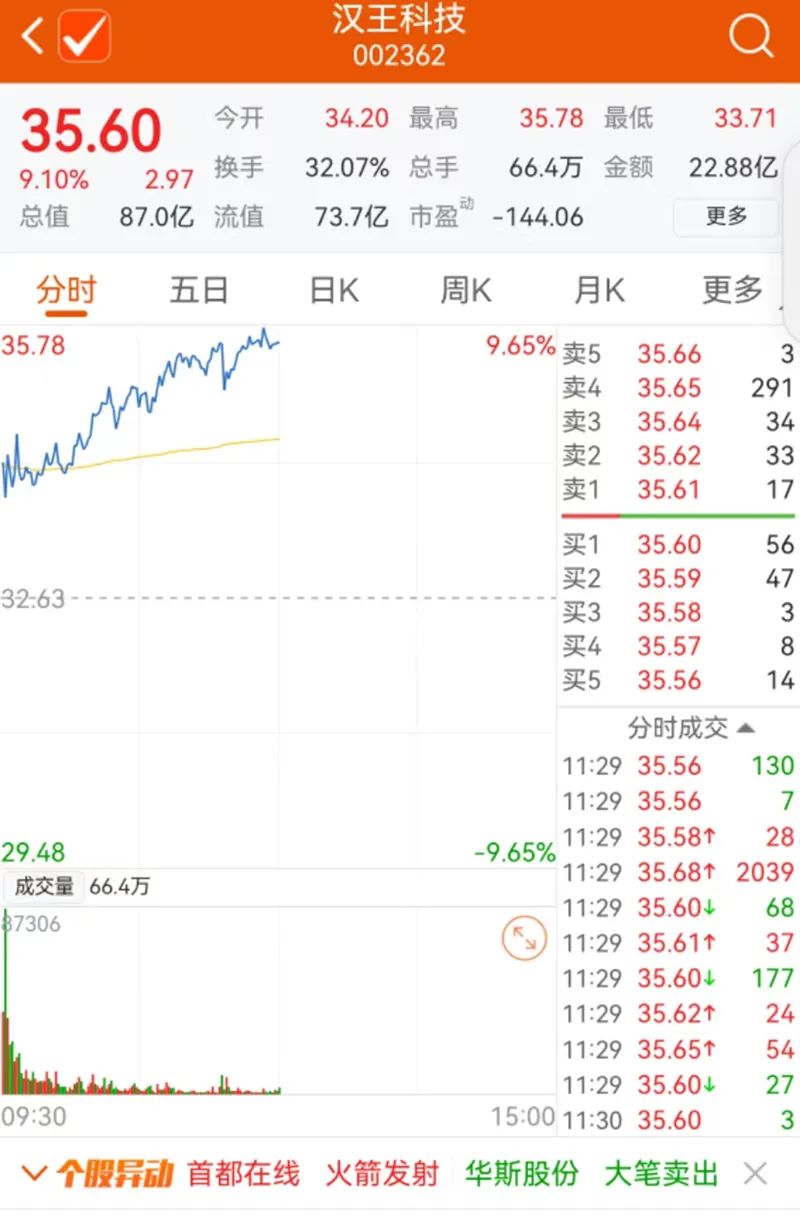 汉王科技今日继续大涨