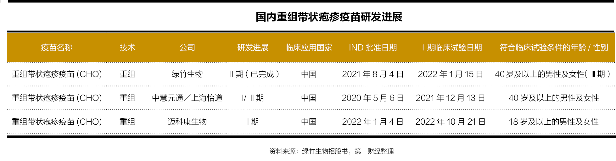 技术路线上,感维为带状疱疹减毒活疫苗,目前国产重组带疱疫苗的研发也在加速,进度较快的有绿竹生物(02480.HK)、怡道生物、迈科康生物等。绿竹生物证券事务代表王刚对第一财经表示,国产创新重组疫苗陆续成功上市后将为国内患者提供更多接种选择,同时将参与全球市场的角逐。