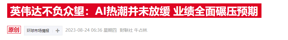 隔夜,英伟达发布了截至7月30日的2024财年第二财季财报,公司在三个月内实现了135.1亿美元的营收,同比上涨101%;净利润录得61.9亿美元,上涨843%。另外公司预期的第三财季增长速度也超过了最乐观的分析师预测。