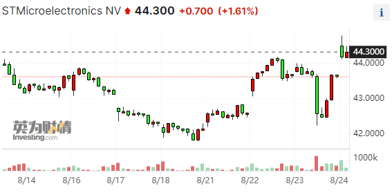 刚开盘的欧股也有所提振,欧洲半导体三巨头中意法半导体在米兰证交所和法国泛欧交易所上市的股价双双涨超1.6%;在德国上市的英飞凌涨1.16%,恩智浦涨1.4%;在荷兰上市的阿斯麦涨1.6%。