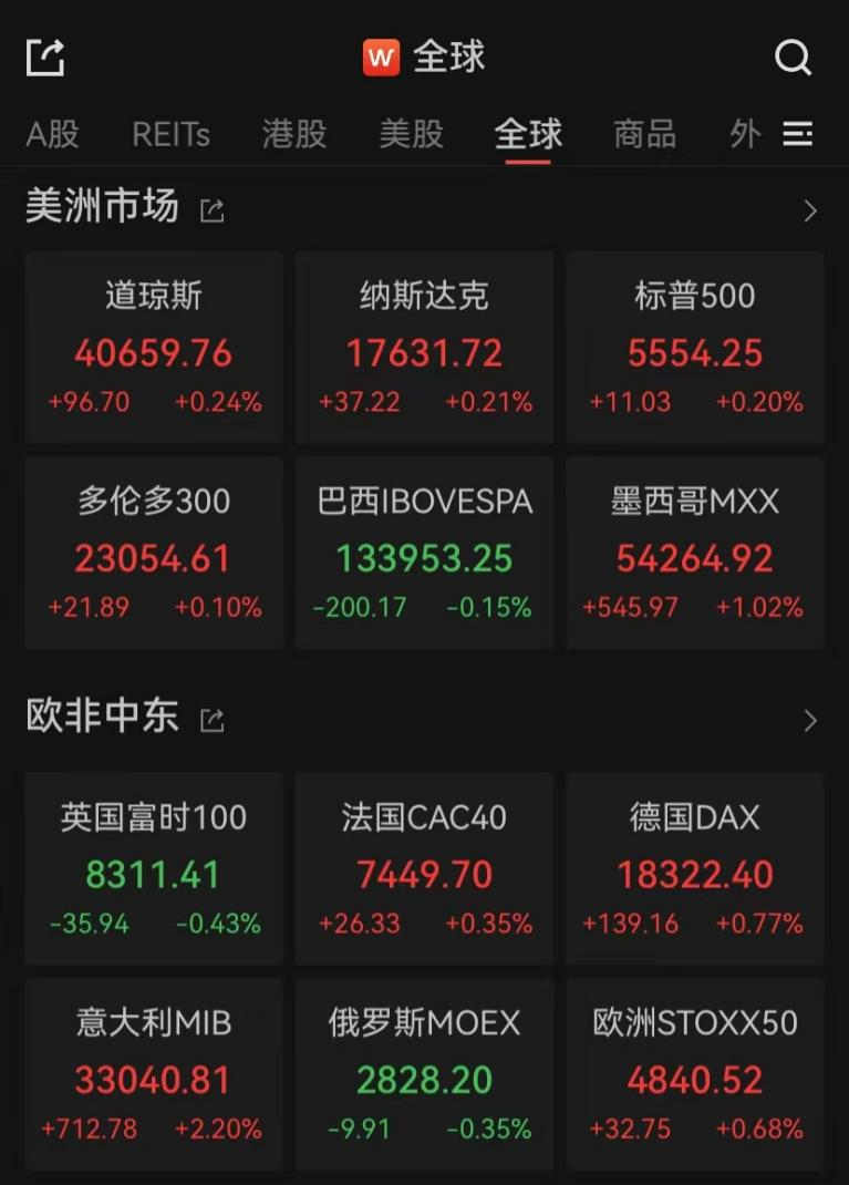 当地时间8月16日,美国三大股指收盘均小幅收涨。Wind数据显示,截至收盘,道指涨0.24%、实现四连涨,标普500指数涨0.2%,纳指涨0.21%、连续七个交易日上涨。