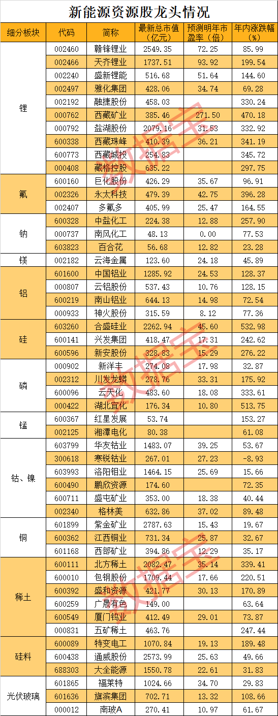 锂+稀土+氟+磷+硅爆了!细分龙头股出炉