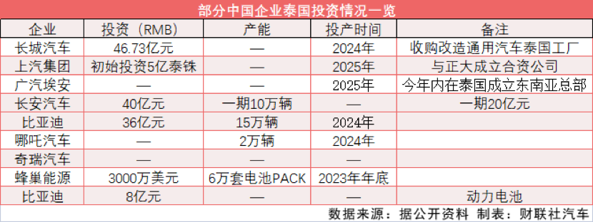 据财联社记者早先统计,截至7月上旬,已有至少八家中国整车生产及产业链企业已经或即将在泰国建厂,总投资超130亿元人民币。其中包括6月宣布正式进入泰国市场的广汽埃安,以及今年更早些时候已动工的上汽集团、比亚迪、哪吒汽车泰国工厂。