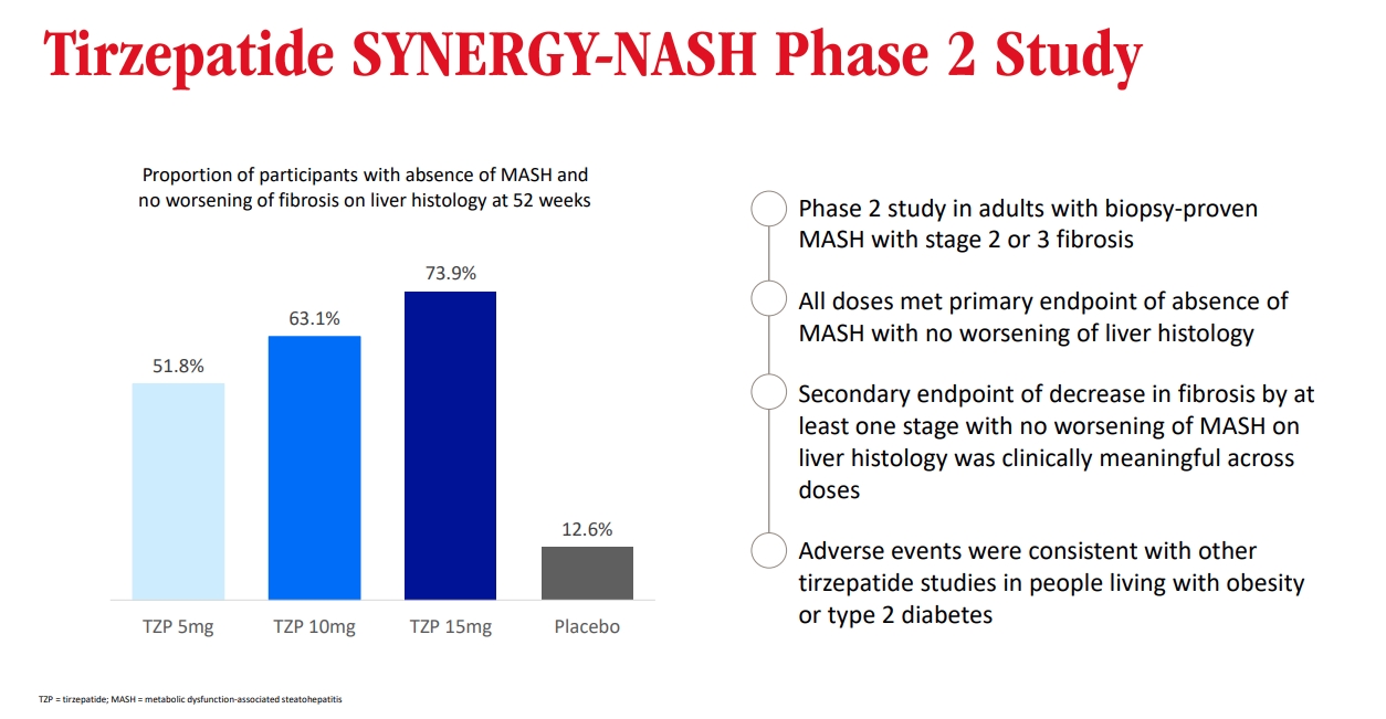礼来在财报中提到,替尔泊肽在治疗一种名为代谢功能障碍相关脂肪性肝炎(MASH)的二期试验中显示出积极的结果。