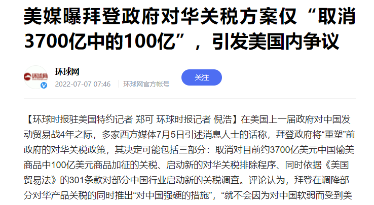 突发!拜登政府对华关税仅取消100亿?
