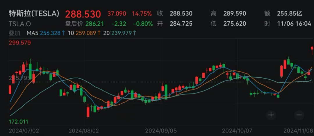 特斯拉涨14.75%。据《国会山报》此前报道,马斯克自2024年7月开始公开支持特朗普,并向其竞选团队投入了至少1.18亿美元。受特朗普竞选总统成功影响,特斯拉收盘大涨。分析师认为,特朗普胜选将使特斯拉成为主要受益者,尤其在特朗普政府可能减少电动车税收优惠的背景下,特斯拉相较其他制造商更具优势。此外,特朗普在胜选演讲中多次提到马斯克,并称赞SpaceX火箭发射及“星链”在灾区提供网络的表现。分析人士认为,特朗普上台后,SpaceX在工人安全和环境监管方面可能面临的限制将减少,有望进一步推动公司发展。