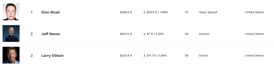 此外,福布斯富豪榜数据显示,特斯拉的大涨使得公司CEO马斯克的身家单日增长了209亿美元(约合人民币1500亿元),总资产达到2856亿美元,远超位列全球富豪榜第二位的杰夫贝索斯。