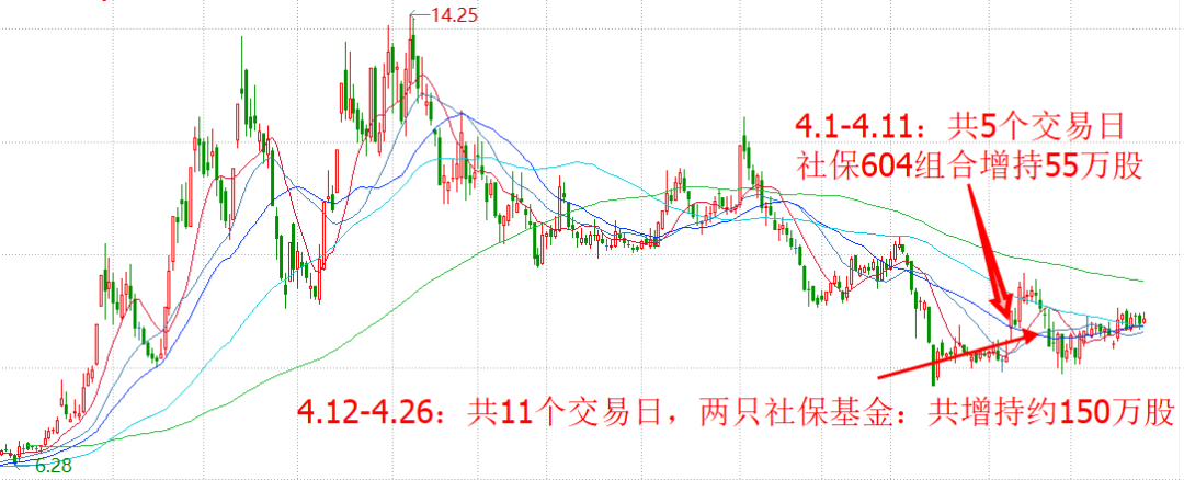 随后9个交易日,社保基金四二零组合继续加仓126.62万股。从加仓时间来看,正好处于股价的相对底部区域。